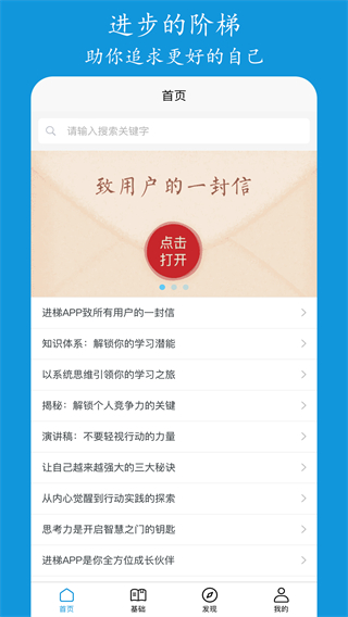 进梯是一款致力于帮助用户实现全方位成长的智能服务平台,它以"成长伙伴"为核心理念,通过科学系统的成长方案,助力用户在个人发展的各个关键领域取得突破。平台采用AI智能分析技术,能够精准识别用户在不同生活场景中的成长需求,从情感管理到职业发展,从社交技巧到自我认知,为用户提供定制化的学习路径。通过将专业理论转化为可操作的实践任务,配合丰富的案例库和互动工具,让用户在沉浸式体验中完成能力跃迁,真正实现"学以致用"的成长闭环。