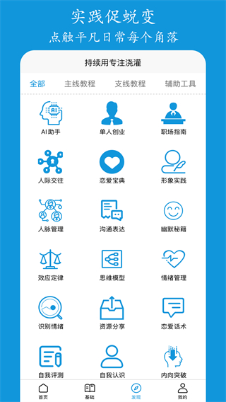 平台精心设计了12个核心成长模块,不仅包含常见的恋爱情感、职场发展等内容,还创新性地加入了压力管理、时间规划等实用板块。每个模块都经过专业团队的系统化梳理,确保内容的科学性和实用性,让用户在一个平台就能获得全方位的成长支持。