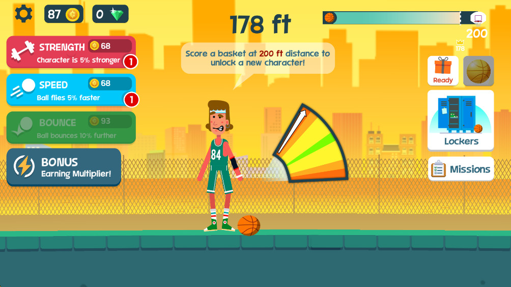 进入游戏后,系统会提供简单易懂的新手教程,帮助玩家快速掌握基本操作。游戏界面设计简洁明了,主界面直接显示当前可挑战的关卡和已获得的成就。开始游戏时,玩家只需轻触屏幕任意位置即可投出篮球,投掷力度由触控时间长短决定,长按屏幕会蓄力投出更远的距离。