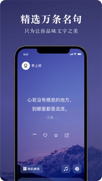 在这个信息爆炸的时代,墨摘APP致力于成为你心灵的港湾。我们相信文字具有穿越时空的力量,能够温暖人心、启迪智慧。应用不仅收录了古今中外数万条经典名句,还提供了完善的笔记功能,让你可以随时记录阅读感悟。通过智能算法,墨摘能根据你的阅读习惯推荐适合的内容,让每一次打开应用都有新的发现。无论是想提升写作水平,还是寻找人生箴言,这里都是你的不二之选。