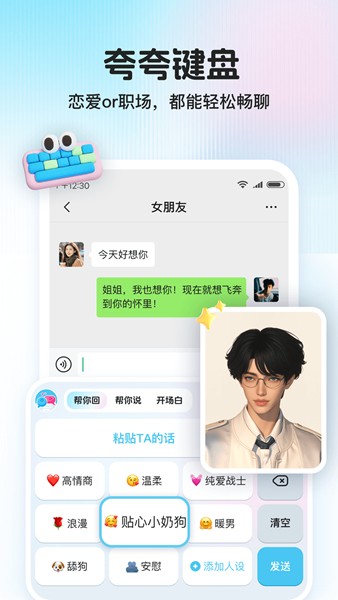 夸夸键盘的核心功能设计围绕提升用户社交体验展开: