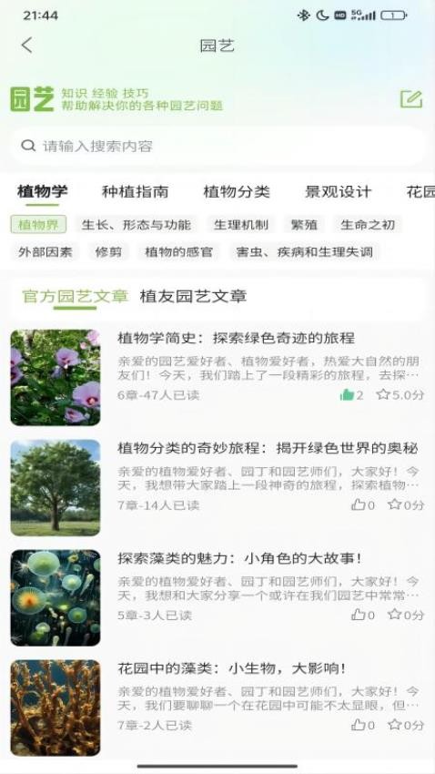 学习各种园艺知识可以帮助用户增长园艺方面的新知识,掌握更多种植技巧知识。软件定期更新园艺科普文章和视频教程,内容涵盖植物学基础知识、现代园艺技术、家庭园艺创意等,让用户在碎片时间也能持续提升园艺素养。