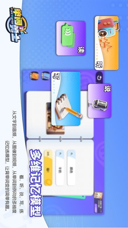 采用游戏化关卡设计,每个关卡都设定明确的单词学习目标,通过循序渐进的方式帮助用户高效记忆。关卡难度逐步提升,既保证学习效果又避免挫败感。