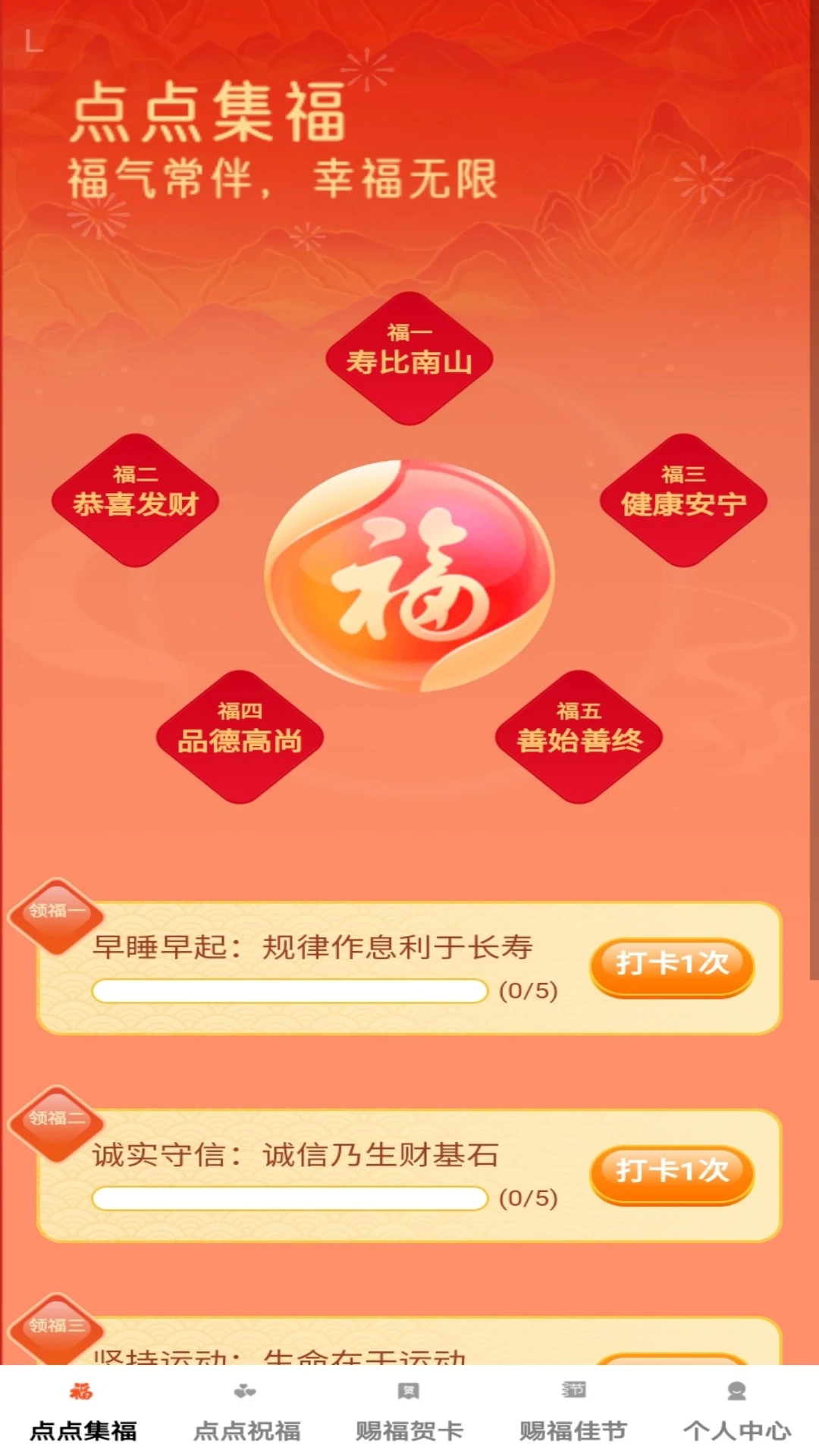 点点集福:每日打卡功能,用户通过完成简单任务积累福气值,解锁更多祝福内容。