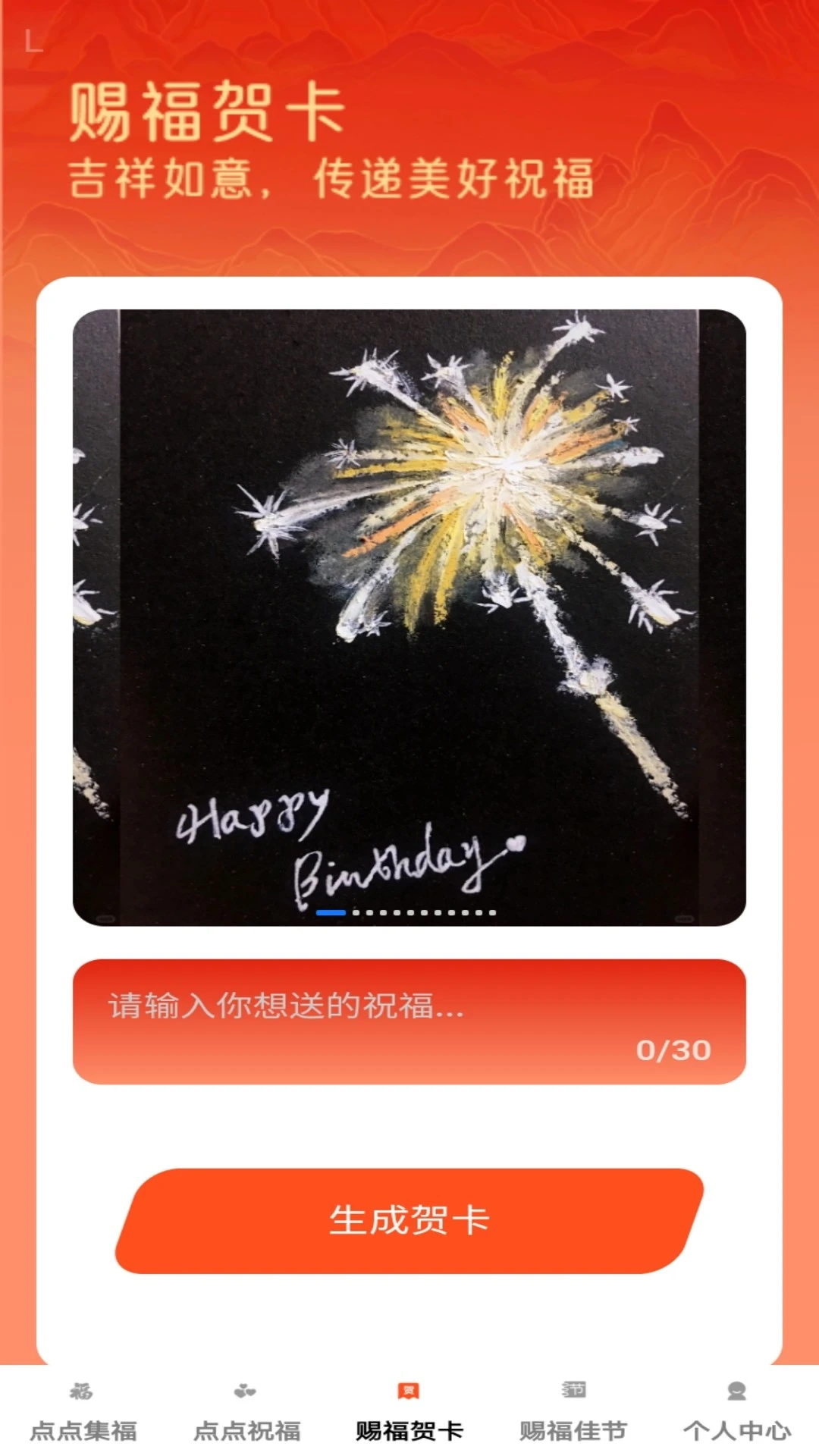 赐福贺卡:支持自定义模板,用户可上传照片、添加文字,生成独一无二的电子贺卡。