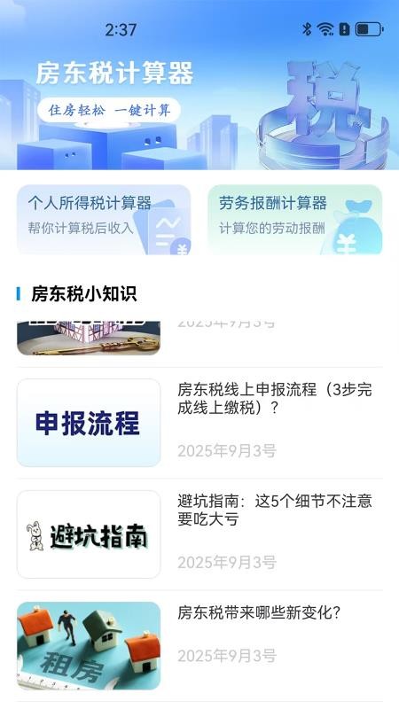 软件内置详尽的房东税知识库,涵盖从基础概念到实操技巧的完整内容,通过分类清晰的图文教程,帮助用户系统掌握各类税务知识,避免在缴税过程中出现错误。