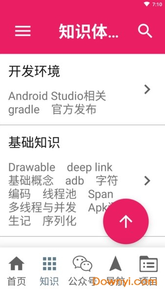 首页采用轮播图展示热点内容,配合智能推荐的文章列表;知识体系模块系统整理开发环境配置、基础语法、UI交互等核心知识点;专题栏目深度解析热门技术话题;公众号功能聚合行业优质技术账号;导航页面分类整理常用开发网站、技术博客和工具资源;完整项目模块提供可运行的示例代码;用户系统支持完整的注册登录流程;收藏功能可管理个人学习记录;文章详情页优化阅读体验;搜索功能支持热门和历史记录;待办事项管理学习计划;支持多种文章分享方式;提供夜间模式、无图模式等个性化选项;自动切换夜间模式保护视力;主题颜色自定义功能;首页置顶文章可自由控制;缓存清理保持应用流畅运行。