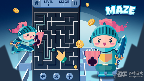 游戏操作非常简单易上手。玩家只需用手指轻触屏幕上的角色,然后向想要移动的方向滑动即可。游戏支持四个方向的移动操作:向左滑动、向右滑动、向上滑动和向下滑动。玩家需要仔细观察迷宫布局,规划最优路径,将角色顺利引导至终点。随着关卡的推进,迷宫会加入更多机关和障碍,需要玩家开动脑筋,寻找破解之道。