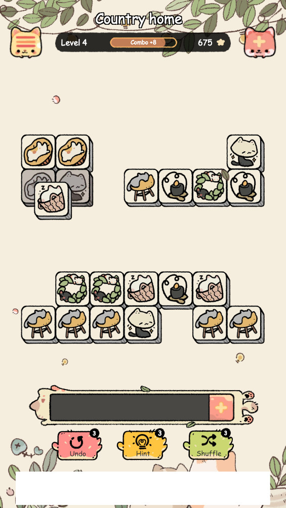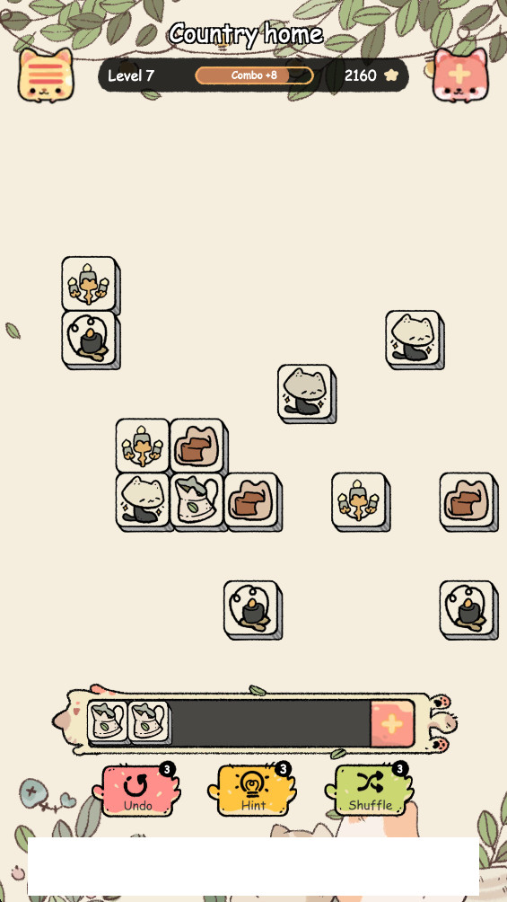 《磁贴猫》是一款充满创意与趣味的消除类休闲游戏,以其独特的磁贴消除机制颠覆了传统三消玩法。玩家通过简单的点击和滑动操作,将相同颜色的磁贴连接起来进行消除,同时收集分数解锁更多精彩内容。游戏中设计了众多萌态十足的猫咪角色,它们不仅会为玩家加油打气,还会在关键时刻提供特殊帮助或惊喜奖励,让整个游戏过程充满欢乐与挑战。清新可爱的画风搭配轻松愉悦的背景音乐,为玩家营造出轻松解压的游戏氛围。