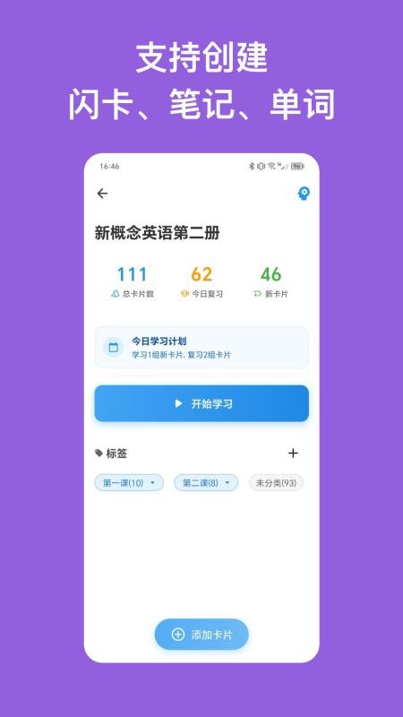 闪卡支持正反面显示,用户可以设置显示时间、重复次数等,帮助自己更好地掌握重点内容。支持语音朗读功能,强化听觉记忆。可调节的卡片翻转动画,让复习过程更加生动有趣。