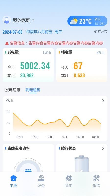 在安全监控方面,太阳绿电通app最新版具备智能告警功能,能够24小时不间断监测电站设备运行状态。一旦发现设备异常或故障,系统会立即通过APP推送告警信息,确保用户能够第一时间发现问题并及时处理。更贴心的是,软件还内置了在线报修功能,用户只需简单填写故障描述和联系方式,就能快速提交维修申请,大大提高了故障处理效率。