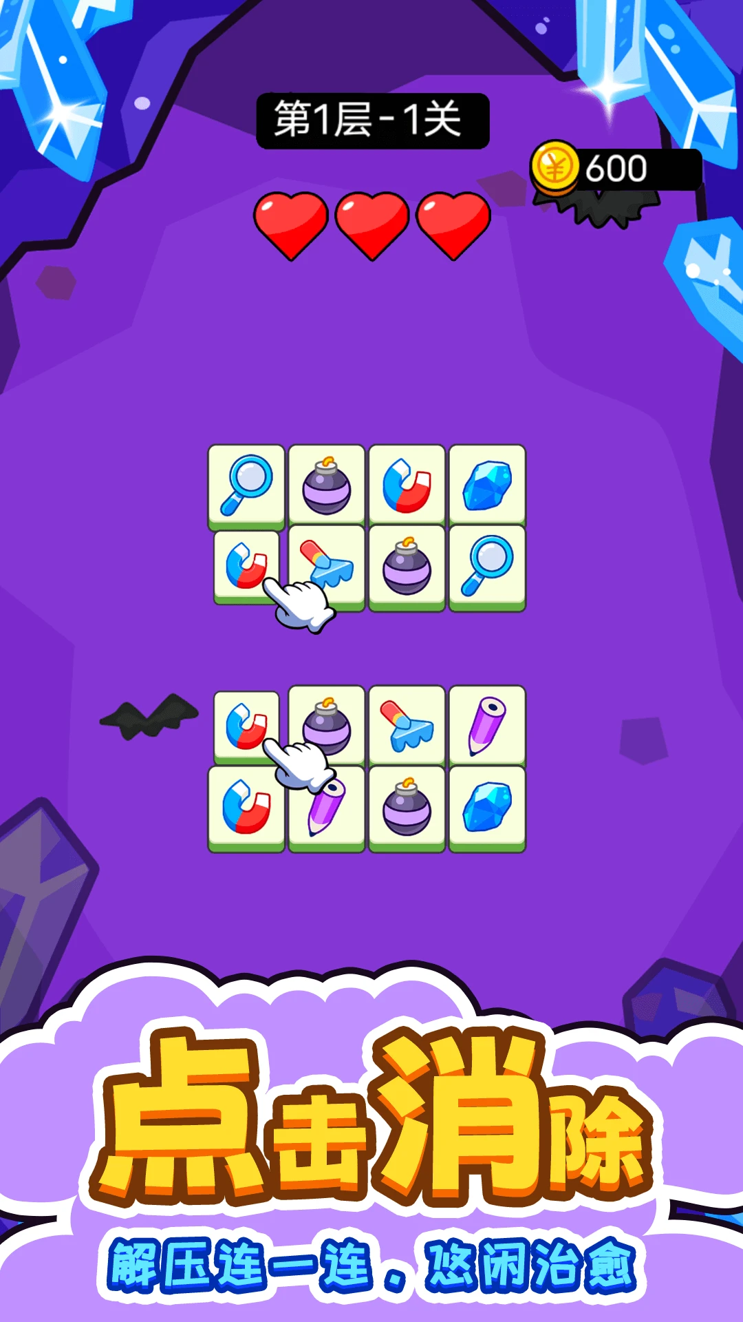简单操作玩法:只需点击两个相同方块即可连线消除,轻松上手无门槛。