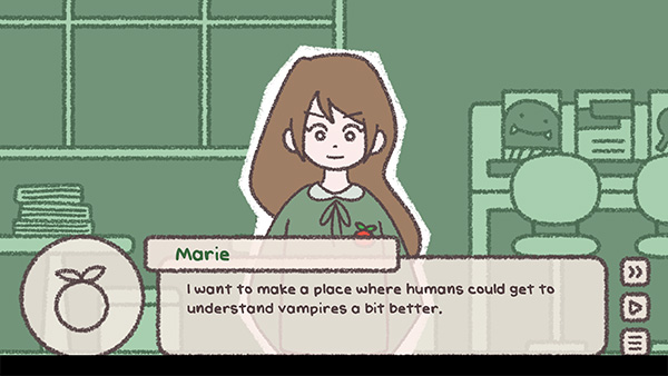 纯手绘画面风格独特而精致,每个角色都拥有鲜明的个性和生动的表情,吸血鬼设定打破常规,以呆萌可爱的形象呈现,为游戏增添了温馨治愈的氛围。美术细节处处体现开发团队的用心。