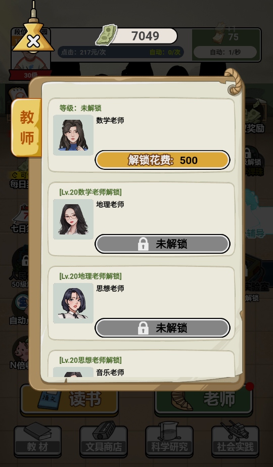 点击老师界面可以选择不同的任课教师。每位老师都有独特的教学风格和专长领域,选择合适的老师能帮助你更高效地提升学识水平。