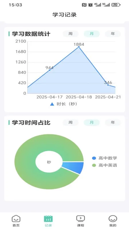 学习成果智能化展示功能,通过数据分析和可视化图表,帮助学生清晰了解学习进度和薄弱环节。