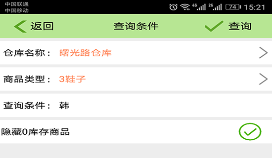点【查询】根据需要,输入查询条件,比如输入商品的编码