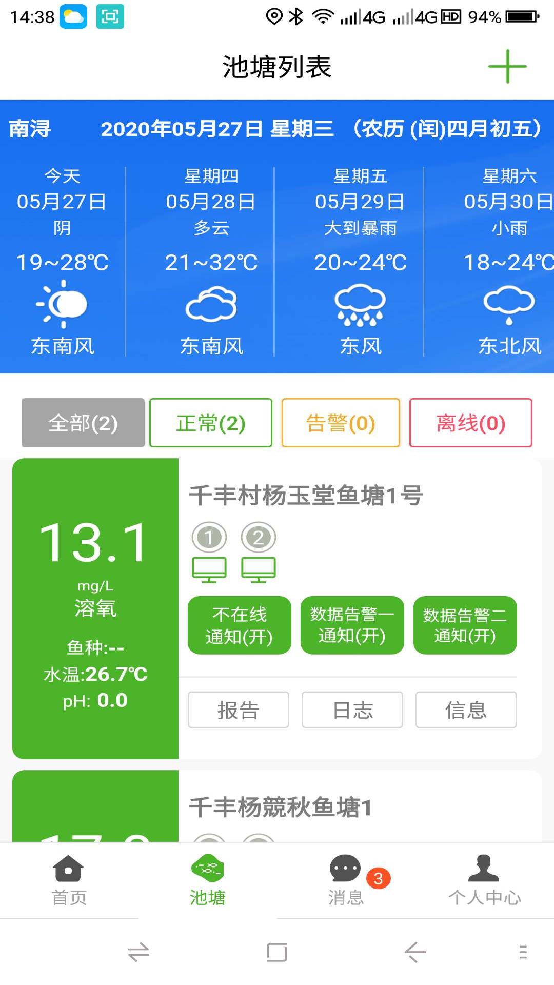 鱼塘管理功能支持多塘口绑定,可查看历史数据对比分析,生成养殖日志和效益评估报告;