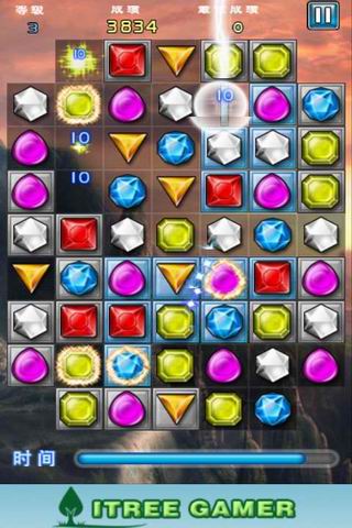 游戏的核心玩法是通过滑动屏幕来匹配并消除3个或3个以上相同的宝石。当玩家成功消除宝石时,会触发连锁反应,产生炫目的特效效果。随着消除的进行,背景会逐渐变得透明,这时神秘的星形宝石就会显现出来。当宝石被消除到只剩最后一行时,玩家就能顺利通过当前关卡。游戏特别设置了时间奖励机制,快速连续消除宝石可以获得额外的高分奖励,这为游戏增添了更多刺激和挑战性。