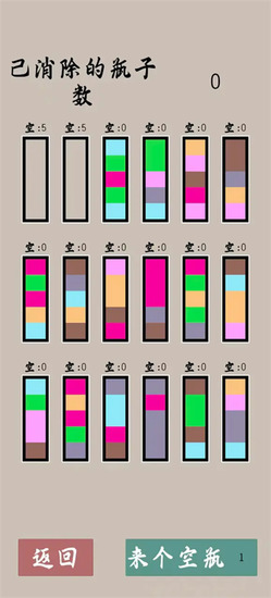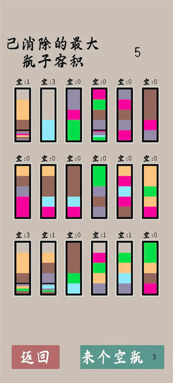 消除条件:当任一容器被同色方块完全填充时,将触发消除机制并获得分数。游戏创新性地引入连锁消除机制,连续触发消除可获得倍数加成。同时设有特殊容器道具,达成特定消除条件可激活全屏清场等强力效果。