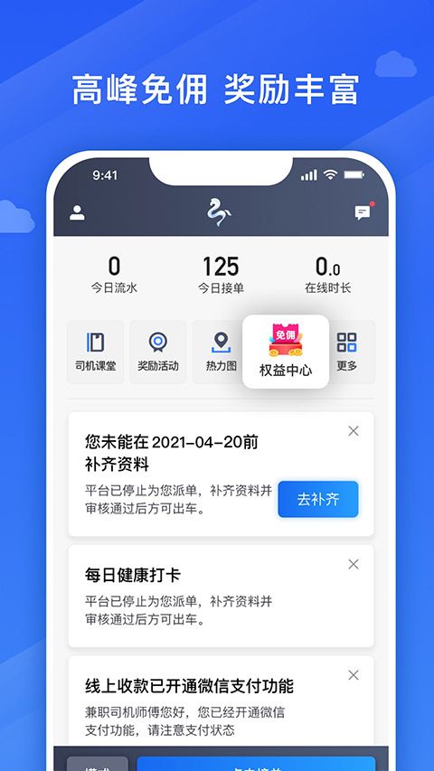 合规平台,官方出品。品质、安全、合规。高德打车免佣联盟官方合作平台。严格的审核流程确保平台所有服务都符合行业标准。海量订单,一键稳赚。智能化多场景订单推送,实时派单随时轻松接,优质预约订单任你挑,更多场景订单任意切。系统会根据司机的工作习惯,优先推送最适合的订单类型。高峰免佣,奖励丰富。工作日早高峰免佣,高峰奖励,冲单奖励,流水奖励,出车奖励等大额奖励你来拿。丰厚的奖励机制激励司机在高峰时段提供服务。平台垫付,收入无忧。无需主动催付款,平台垫付。每周提现到支付宝,佣金秒到账,生活无忧。贴心的资金保障让司机可以安心工作。
