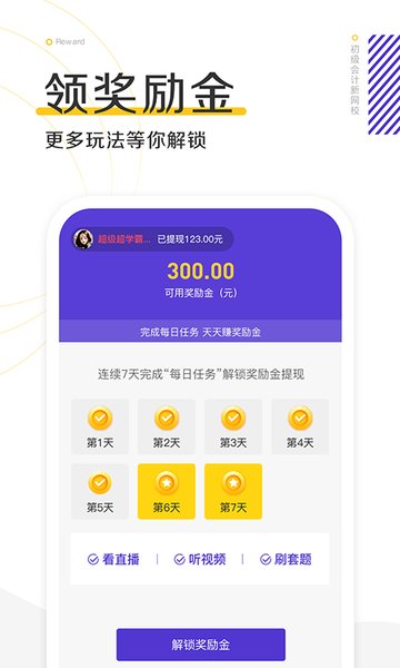 免费学会计,还能得奖励,每日完成每日一练任务打卡,看直播,看视频,刷题库,参与讨论,轻松获得学习奖励金。,还有更多线下福利,等你来解锁~平台独创的学习激励机制,让枯燥的备考过程变得更有动力,学员可以通过坚持学习获得实实在在的物质回报。