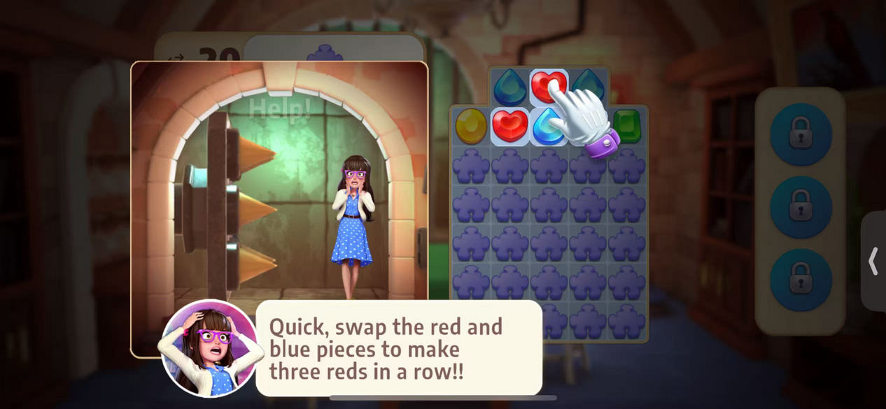 《秘密谜题社团》是一款将紧张刺激的推理剧情与经典三消玩法巧妙结合的创新游戏。在这个充满神秘色彩的世界里,玩家将扮演一名调查员,深入一个由邪恶势力掌控的秘密社团内部。你的好友布鲁克意外卷入这场阴谋,成为恶徒们的目标。为了拯救朋友并揭开社团背后的黑暗真相,你需要运用敏锐的洞察力,通过精心设计的解谜关卡,收集关键线索。每个关卡都设有独特的挑战机制,玩家必须合理规划每一步操作,巧妙搭配各类道具,才能获得更高的评分和丰厚奖励,逐步接近事件的核心。