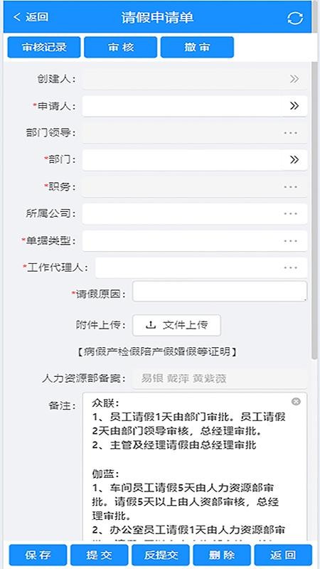 提交请假申请时,只需在申请页面填写必要信息,包括请假类型、起止时间、请假事由等,支持附件上传功能,填写完成后一键提交即可。