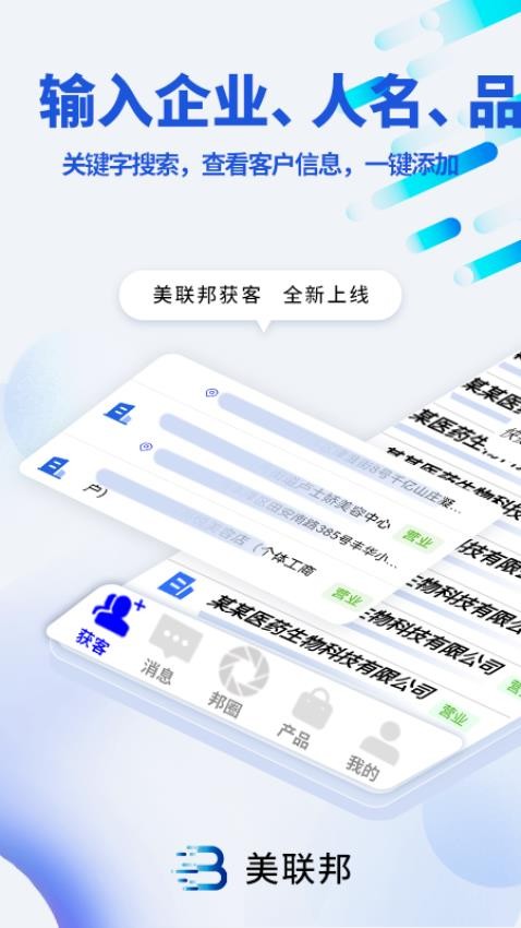美联邦软件的核心功能包括智能客户搜索系统,用户可以通过关键词一键搜索潜在客户信息,并基于多种筛选条件精准定位目标客户群体。平台采用先进的数据分析技术,帮助用户深入了解客户需求,实现精准营销。同时,软件还提供了便捷的客户管理功能,用户可以轻松添加、分类和管理客户资源,大大提升了业务拓展的效率。