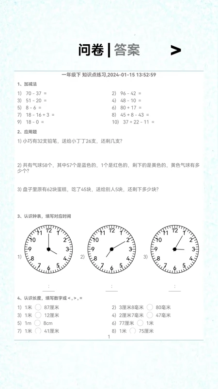 多样化题型:包含加减乘除、应用题等多种题型,全面锻炼数学能力。