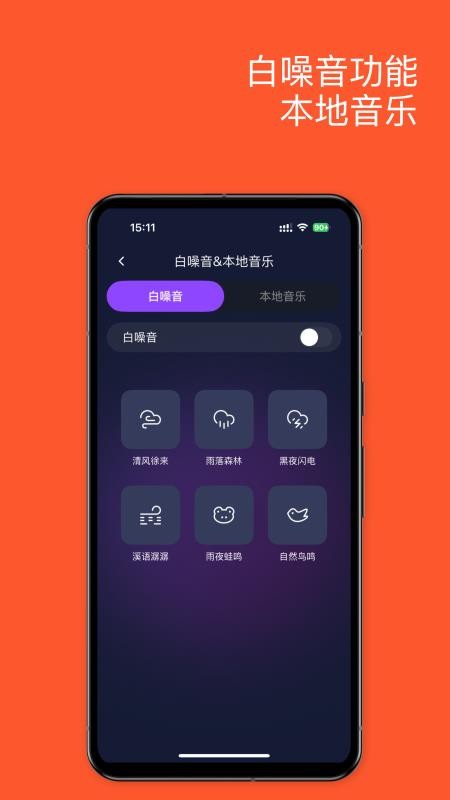 内置丰富的白噪音资源,如雨声、海浪、森林等自然音效,帮助用户放松心情、缓解压力。同时支持本地音乐播放,让用户随时随地享受音乐带来的愉悦。