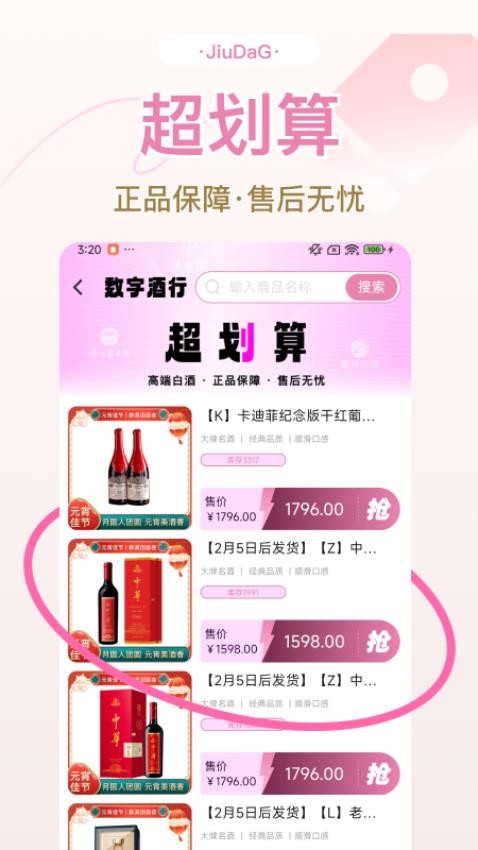 平台汇集了酱香、浓香、清香等多种香型的白酒,以及进口红酒、精品葡萄酒等,满足不同用户的多样化需求。