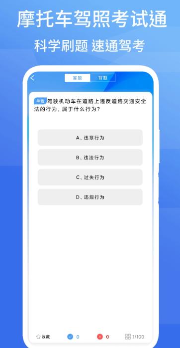 摩托车证考试app是一款专为摩托车驾驶证考生设计的备考工具,提供全面的学习资源和智能化的备考功能。用户可以通过该应用轻松获取科目一至科目四的题库资源,包括章节练习、模拟考试和历年真题等。系统支持个性化学习目标设定,并实时记录刷题进度和正确率,帮助考生科学规划复习计划。独特的错题分析功能可精准定位薄弱环节,配合简洁直观的刷题界面,让用户随时随地高效备考。无论是新手还是复考用户,都能通过系统的学习报告和模拟测试,快速提升考试通过率。