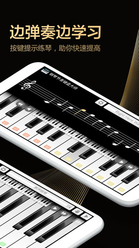 从应用商店下载安装完成后,首次启动需阅读并同意用户协议。进入主界面后,精美设计的钢琴键盘即刻呈现眼前,上方工具栏可快速切换功能模块。在乐器选择页面,可预览各乐器音色特点,点击即可切换当前使用乐器。曲谱库按难度分类整理,每首曲目都配有示范演奏和逐句教学,支持调整播放速度,是自学钢琴的理想工具。练习过程中可随时开启录音功能,回放时系统会智能标注错误音符。