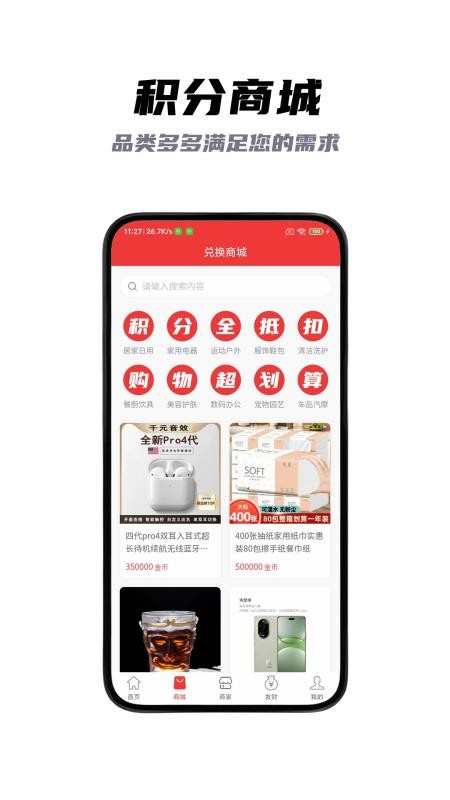 积分商城提供独家的高性价比商品,部分商品支持全积分兑换。会员等级越高,可享受的积分兑换比例越优惠。定期举办的"积分加倍"活动,让您的积分价值最大化。