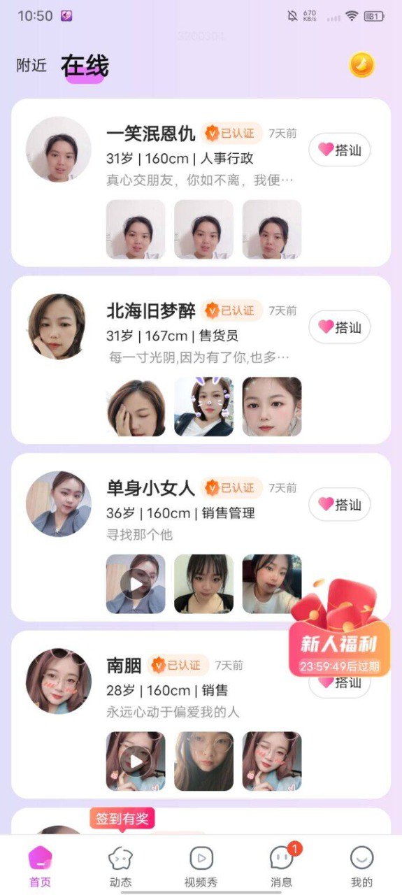 天天聊为用户提供了丰富多样的互动方式,你可以通过文字消息即时交流,也能通过语音通话拉近距离,更支持高清视频连线让沟通更加真实自然。平台基于精准的定位系统,让你可以随时发现同城附近的异性用户,24小时不间断的社交体验让你不错过任何可能的缘分。无论是工作间隙的短暂交流,还是深夜时分的倾心畅谈,都能在这里找到合适的对象。