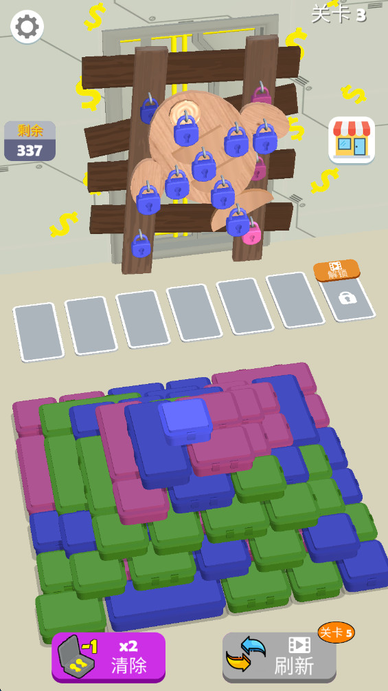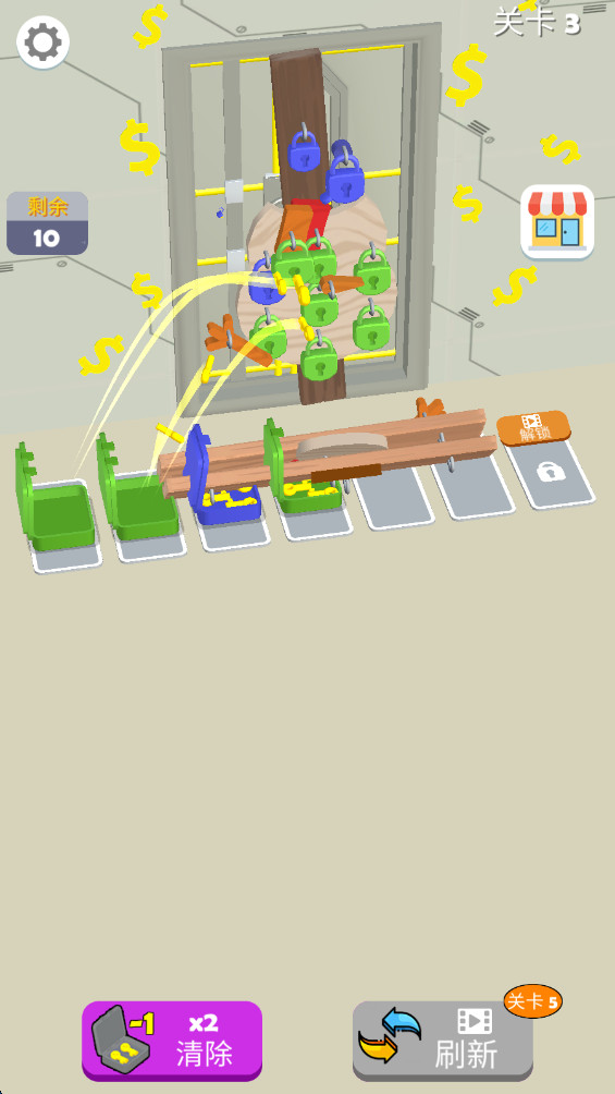 当玩家成功解开当前关卡的所有锁具后,系统会自动解锁下一关的挑战。每通过一个关卡都能获得星级评价,完美通关还能解锁隐藏成就和特殊奖励。