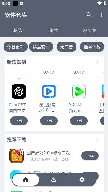 在本站下载应用市场Pure,安装后直接打开应用。首次启动时会有详细的新手引导,帮助用户快速熟悉操作流程。进入App首页后,可以看到精心设计的三个主题模式:简洁、快速、方便,每个主题都经过专业UI设计,用户可以根据个人喜好自由切换。下拉页面会展示多个资源板块,包括耗子修改、小站资源、软件仓库等热门分类,每个分类下都有详细的子分类。直接点击感兴趣的板块就能浏览丰富的应用资源,每款软件都配有详细说明和用户评价,选择需要的软件点击下载按钮即可完成安装,整个过程简单快捷。
