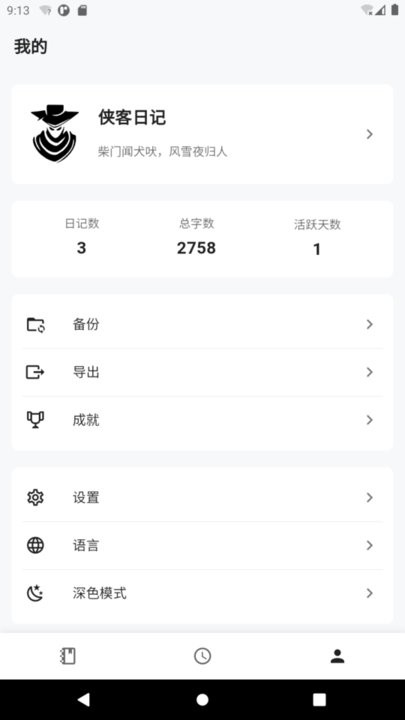 侠客日记是一款开源、跨平台的本地日记应用,致力于为用户打造纯净的书写体验。它采用轻量化设计理念,在保持简洁界面的同时提供丰富的功能选项。软件支持多种记录方式,包括文字输入、语音转写和手写识别,满足不同场景下的记录需求。其独特的"侠客"主题设计,让每一次记录都充满仪式感,仿佛有一位忠实的伙伴陪伴您记录人生旅程。