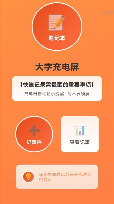 软件为用户提供了大字充电屏保功能,让你在充电时也能轻松记录新事件。这个功能特别适合需要频繁记录重要事项的用户,通过醒目的文字提醒确保不会错过任何关键信息。同时支持自定义提醒时间和样式,满足不同用户的个性化需求。