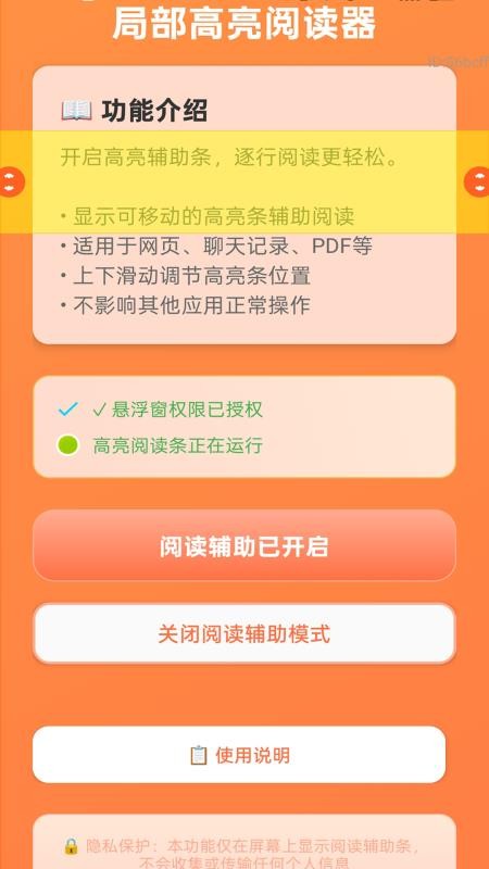 使用局部高亮阅读器可以实时进行阅读辅助,帮助用户聚焦特定区域。这个功能特别适合需要精读文档的用户,通过高亮显示关键段落,有效提升阅读效率和理解能力。同时支持自定义高亮颜色和范围,满足不同场景下的阅读需求。