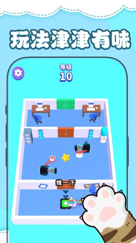 游戏的主角是一只活泼可爱的小猫咪,它拥有灵活的身手和敏捷的反应能力。玩家需要充分利用猫咪的这些特性,在复杂的房间布局中寻找出路。猫咪可以轻松跳上家具,钻进狭小的空间,这些能力都是逃脱的关键。