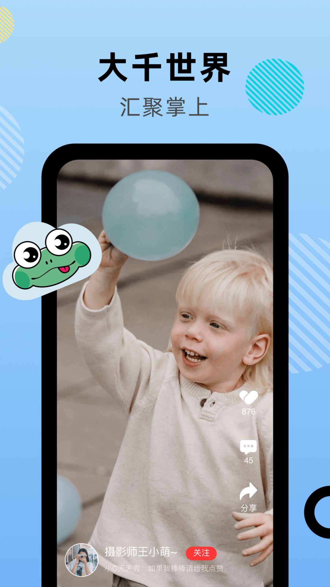云蛙短视频让您的生活充满欢乐与创意,通过简单的拍摄就能记录精彩时刻。平台提供丰富的特效和编辑工具,让您轻松制作出专业水准的短视频作品。无论是想展示才艺还是分享生活,这里都是您展现自我的最佳舞台。