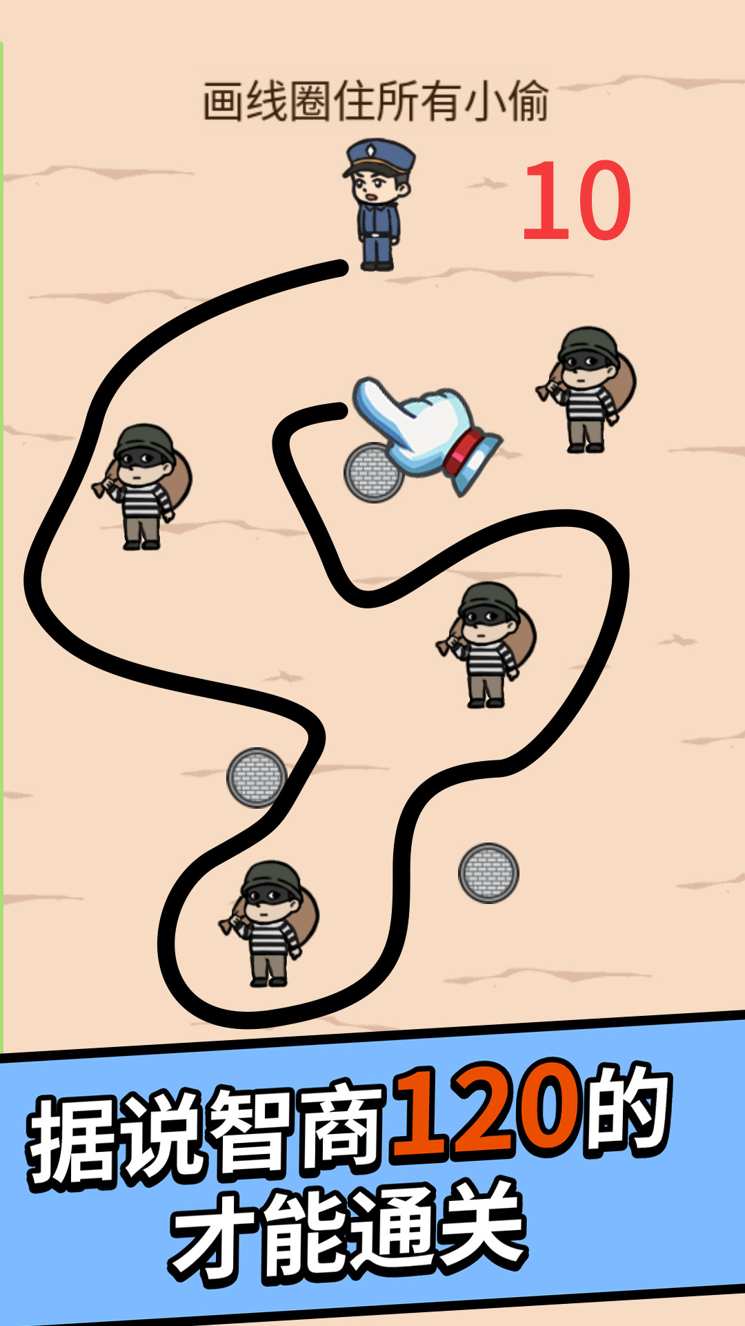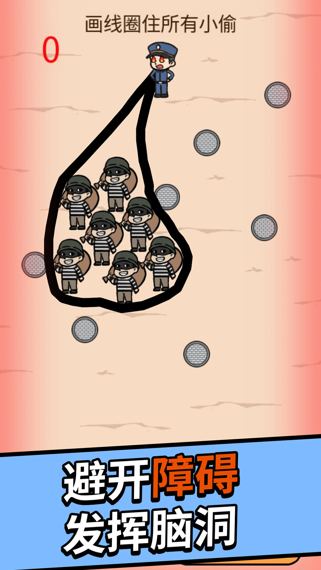《抓住小偷》是一款充满创意与挑战的趣味画线解谜游戏。玩家需要通过绘制线条将狡猾的小偷围困在指定区域内,同时巧妙避开各种障碍物。游戏包含丰富多样的关卡设计,每个关卡都经过精心打造,既考验玩家的逻辑思维能力,又能激发无限创意。随着游戏进程推进,难度会逐步提升,带来持续的新鲜感和挑战性。独特的画线机制搭配生动有趣的场景,让玩家在轻松愉快的氛围中享受解谜乐趣。快来发挥你的聪明才智,体验这场智力的较量吧!