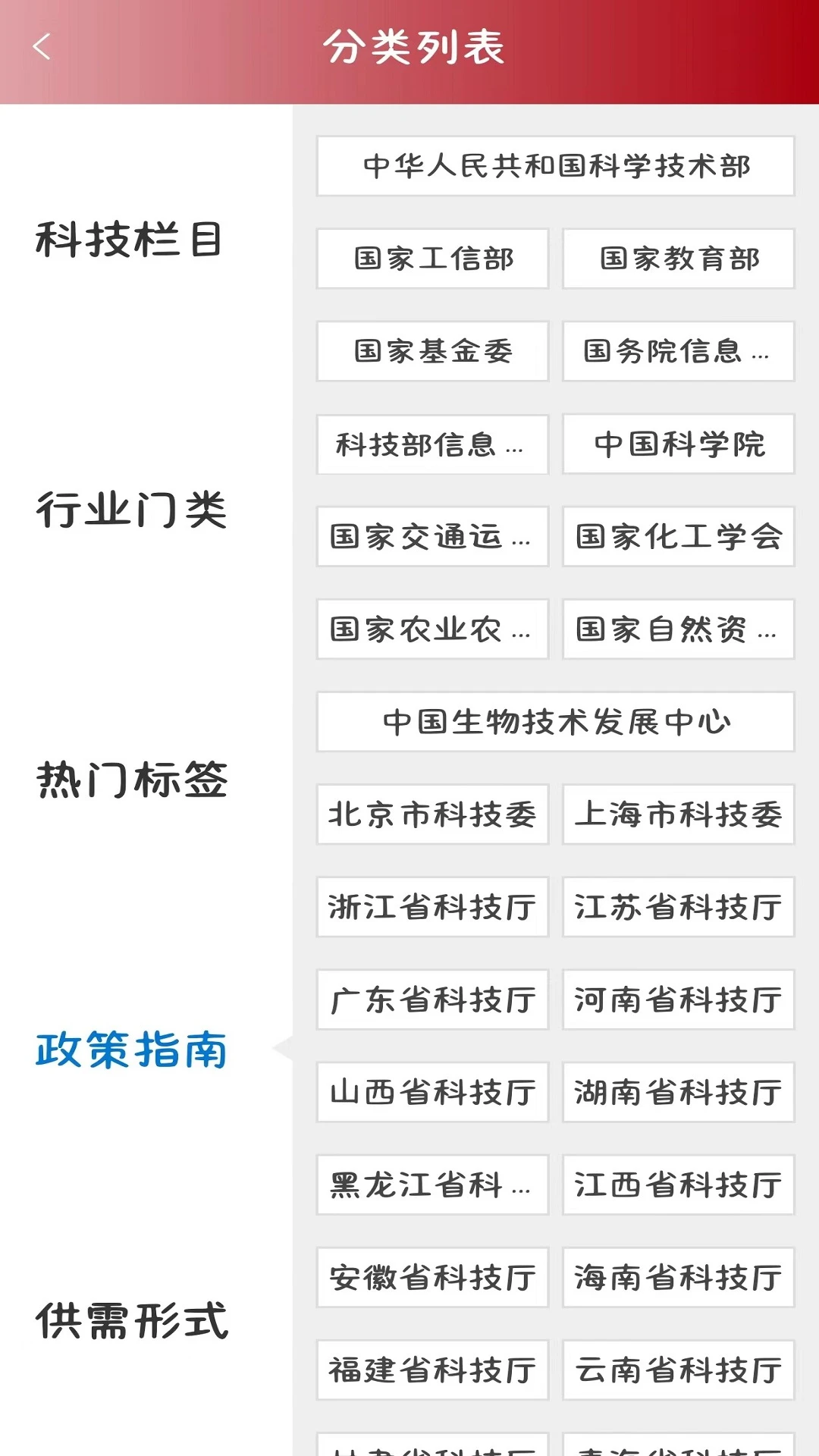 科技政策推送:整合国家级至地方级政策文件,通过智能算法匹配用户需求,实时更新推送。