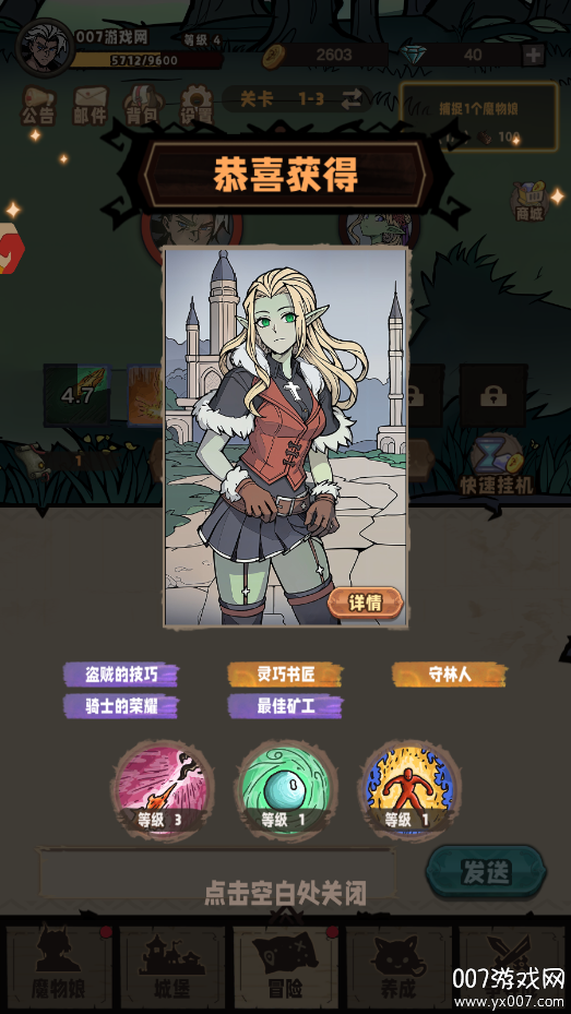 首先你需要在007游戏网进行下载安装《代号魔物娘》,安装完成后即可进入游戏。游戏采用轻松便捷的放置玩法,玩家只需简单设置就能自动挂机获取资源,非常适合碎片化时间游玩。除了基础的放置玩法外,你还可以捕捉各种可爱的魔物娘进行养成,每位魔物娘都能带来不同的战斗加成。游戏内设有清晰的任务指引,跟随主线任务可以获得丰厚的奖励,帮助玩家快速成长。多样化的玩法组合让游戏体验更加丰富多彩,满足不同玩家的需求。