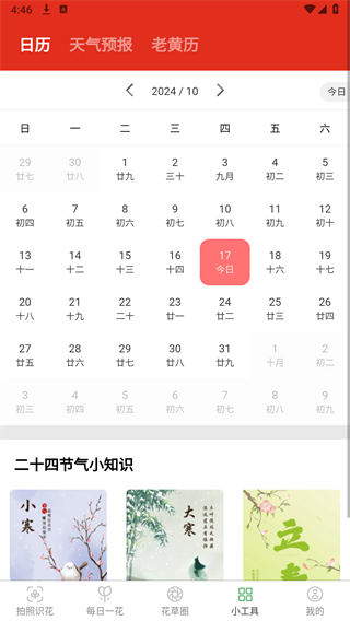 除了花草相关的,集成了实用的日历天气与二十四节气等功能。提前掌握每日天气变化,合理安排出行计划,选择极好的时机开启新篇章。生活因此更加得心应手,每一天都充满好运与期待。特别添加植物养护提醒功能,根据季节变化智能推送浇水、施肥等养护建议,让您的植物得到最贴心的照料。