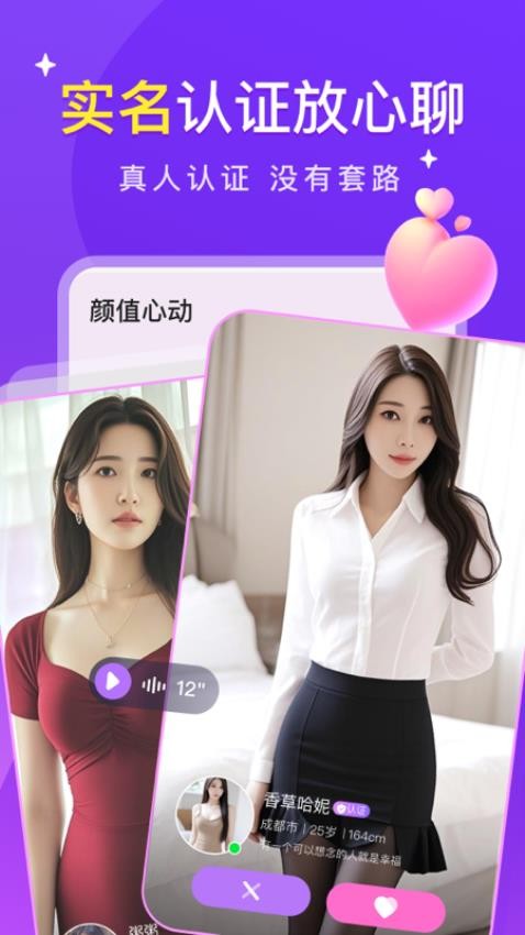 平台采用身份证+人脸识别的双重认证体系,每个认证用户都会获得专属标识。严格的审核机制有效杜绝虚假账号,确保交友环境真实可靠,让你可以放心交流。
