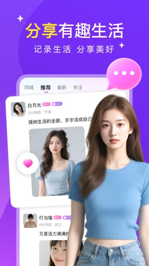 提供图文并茂的动态发布功能,支持添加位置标签和话题标签。你可以浏览他人分享的精彩生活,也可以通过点赞评论建立初步互动,为深入交流创造契机。