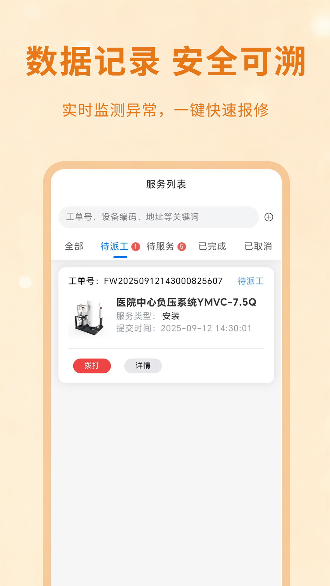 服务版块不仅提供完整的工单记录,还能按照处理状态、紧急程度、时间范围等多维度筛选。系统支持工单导出和打印功能,方便用户进行纸质存档或会议汇报,大幅提升工作效率。