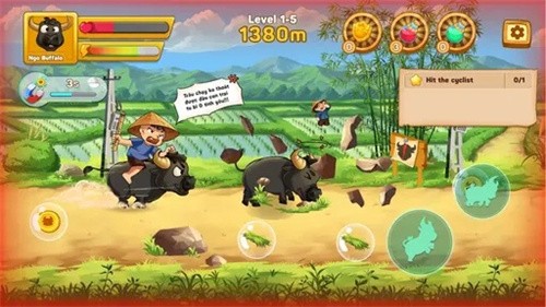 泥泞的小道、深不可测的坑洞,甚至是突如其来的障碍物,都会影响水牛的行进。如何敏捷地避开这些障碍物,以保证水牛的安全和速度,成为每位玩家必须认真思考的问题。通过不断的练习与尝试,玩家能逐步掌握技巧,提升闯关的效率与乐趣。游戏还加入了独特的天气系统,雨天会让道路更加湿滑,晴天则可能遇到扬尘等特殊效果,这些动态变化的环境要素让每次挑战都充满新鲜感,考验玩家的临场应变能力。